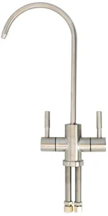 Popularny podwójny kranik stosowany w filtrach podzlewowych. Sprawdza się jako wylewka do filtrów wody podzlewowych oraz odwróconej osmozy. Kolor satynowy.