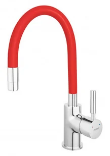 ZUMBA Bateria zlewozmywakowa stojąca z elastyczną wylewką czerwona posiadająca regulator ceramiczny. Montaż jednootworowy oraz ustawienie dowolnego kształtu wylewki. Bateria ma zasięg wylewki od 150 mm do 350 mm oraz zmienną wysokość wylewki od 280 mm do 440 mm. Zamontowany ma również regulator strumienia M22x1 oraz przyłącza elastyczne G3/8 - M10x1.