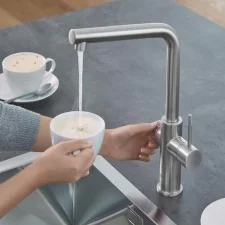 Wprowadź swoją kuchnię w XXI wiek, montując w niej innowacyjny system GROHE Red! *Istnieje również możliwość zakupu zaworu GROHE Red 40841001, który miesza wrzątek z wodą zimną, pozwalając na uzyskanie strumienia o temperaturze w zakresie 35°- 75°C, bez konieczności instalowania dodatkowych podgrzewaczy przepływowych.