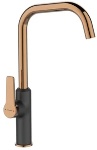 Bateria zlewozmywakowa czarna/różowe złoto ALANIS Materiał wykonania: mosiądz Typ uchwytu: jednouchwytowa Sposób montażu: stojący Rodzaj głowicy: ceramiczna Średnica głowicy: