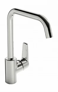 Bateria kuchenna z wysoką, obrotową wylewką. Kąt obrotu wylewki ustawiony jest fabrycznie na 120° (można zmienić blokadę na 60°). Posiada również wbudowaną funkcję ograniczającą przepływ i temperaturę wody. F= elastyczne wężyki podłączeniowe Posiada znak budowlany "B", atest PZH, deklarację zgodności. Dane techniczne Typ wylewki Wylewka obrotowa Kolor Chrom Wielkość przyłącza G3/8 Woda ciepła zasilająca max.