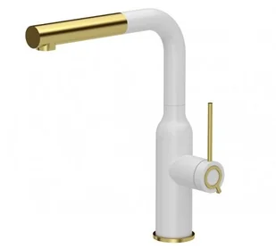ANGELINA Q Line Pull out SteelQ stalowa bateria kuchenna z wyciąganą wylewką Very white mat - biały mat / Nano PVD złoty
