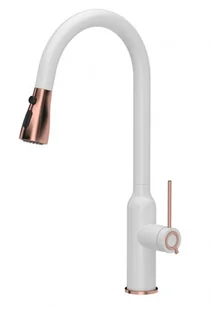 JESSICA Q Line Pull out shower SteelQ stalowa bateria kuchenna z wyciąganą wylewką i funkcją prysznica Very white mat - biały mat / Nano PVD miedź