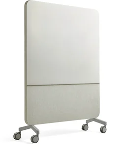 Mobilna tablica magnetyczna z powierzchnią ze szkła i dźwiękochłonnym tyłem i 1/2 przodu. Tworzy lepsze warunki akustyczne i nadaje pomieszczeniu nowoczesny wygląd. Niezwykle funkcjonalne rozwiązanie! Tablica szklana służy do pisania, pochłania dźwięki i wydziela przestrzeń!