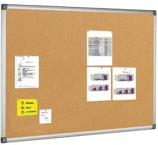 Materiał: korek Pinezki nie zostawiają na niej śladów Do przypinania informacji, plakatów itp. Zestaw do montażu Z ramą aluminiową Wymiary: 120 x 90 cm