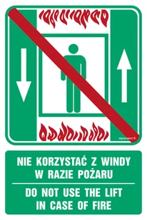 AC070 NIE KORZYSTAĆ Z WINDY W RAZIE POŻARU / DO NOT USE THE LIFT IN CASE OF FIRE, TS - PŁYTA TD FOTOLUMINESCENCYJNA; (500X750MM)