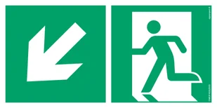 AE093 KIERUNEK DO WYJŚCIA EWAKUACYJNEGO W DÓŁ W LEWO, PS - PŁYTA PCV 1MM FOTOLUMINESCENCYJNA; (200X100MM)