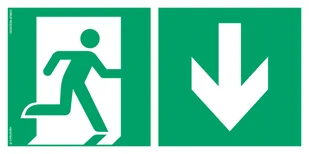 AE099 KIERUNEK DO WYJŚCIA EWAKUACYJNEGO W DÓŁ PRAWOSTRONNY, FS - FOLIA SAMOPRZYLEPNA FOTOLUMINESCENCYJNA; (300X150MM)
