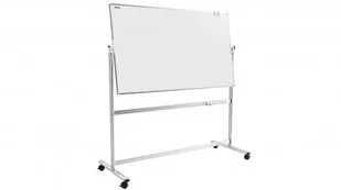 Rozmiary tablicy: wysokość 100 cm szerokość 170 cm wysokość całkowita tablicy ze stojakiem 185 cm Zalety tablicy: stabilna konstrukcja system blokujący kółka tablica dwustronna, obrotowa aluminiowa półka na markery z plastikowymi zaślepkami, zwiększającymi bezpieczeństwo użytkowania rama aluminiowa anodowana Tablica przeznaczona do pisania suchościeralnymi markerami oraz do zawieszania kartek za pomocą magnesów.
