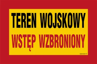JE003 TEREN WOJSKOWY WSTĘP WZBRONIONY, BN - PŁYTA ŻÓŁTA 0,6MM; (600X400MM)