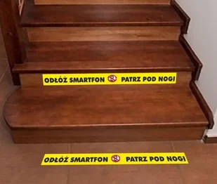Do miejsc o nietypowej fakturze oraz narażonych na szczególnie trudne warunki polecamy bardziej wytrzymałe wersje wyposażone w laminat stały lub podłogowe. Naklejki są odporne na zmywanie. Obecnie jest "plaga" osób zapatrzonych w smartfony i coraz częściej pojawiają się kontuzje spowodowane wejściem takiej osoby na przeszkodę, której nie dostrzegł. Stąd pomysł aby informacje o przeszkodzie umieszczać na podłożu - gdzie mają szansę zostać dostrzeżone. Naklejki lub podłogę z treścią "Odłóż smartfon - patrz pod nogi" warto umieszczać na schodach w szkołach, przedszkolach, świetlicach czy innych instytucjach.