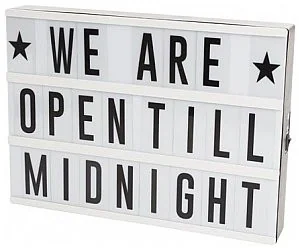 LEDlight box,USB,3x AAA,95 letters,10 emojis,30 x 22 x 4. 3 cm Ten LED light box ze złączem USB jest idealny do kreatywnej ekspresji i wysyłania unikalnych wiadomości. Ma wymiary 30 x 22 x 4,3 cm i oferuje miejsce na 95 liter i symboli, które można wykorzystać do tworzenia spersonalizowanych wiadomości, cytatów, imion lub symboli. Kaseton może być jako wolnostojący lub zamontowany na ścianie, zapewniając elastyczność w umieszczaniu. Dzięki 1-metrowemu kablowi USB można ją łatwo ładować i używać.