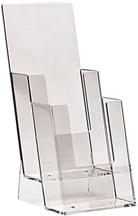 Odlewany plastikowy stojak umożliwiający prezentację ulotek w pozycji pionowej.