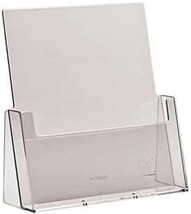 Odlewany plastikowy stojak umożliwiający prezentację ulotek w pozycji pionowej.