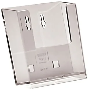 Odlewany plastikowy stojak umożliwiający prezentację ulotek w pozycji pionowej. Do powieszenia lub dzięki dodatkowej nóżce znajdującej się w zestawie, również do postawienia na ladzie, biurku, stole.