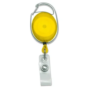 Plastikowy brelok typu YoYo z metalowym karabińczykiem oraz winylowym paskiem przyczepionym do końca sznurka. Kolor żółty transparentny (przezroczysty), długość sznurka 772mm.