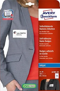 Samoprzylepne identyfikatory imienne_Avery Zweckform___samoprzylepne identyfikatory pewnie przylegają i dają się łatwo usunąć nie niszcząc ubrań___praktyczna i ekonomiczna alternatywa dla identyfikatorów z tworzyw sztucznych___idealne jako identyfikatory podczas konferencji, seminariów czy spotkań___identyfikatory samoprzylepne są dostępne w dwóch wersjach:__ odpowiednie do zadruku na drukarkach laserowych, wykonane ze sztucznego jedwabiu__ przeznaczone do drukarek atramentowych, wykonane z elastycznej folii (polipropylen)___darmowe i łatwe w użyciu szablony oraz oprogramowanie_dostępne na stronie www.avery-zweckform.pl___jednostka sprzedaży 1 opakowanie