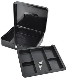 Metalowa kasetka idealna do przechowywania pieniędzy, dokumentów lub innych drobnych przedmiotów.