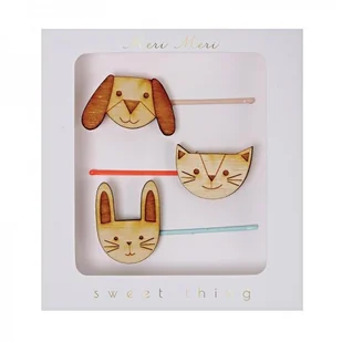 Głowa pełna pomysłów i. . . zwierzyniec we włosach! Prześliczne spinki są wykonane z drewna. W zestawie: pies, kot i króliczek. Brytyjska marka Meri Meri od 35 lat zachwyca pięknymi, dopracowanymi do najdrobniejszego detalu produktami.