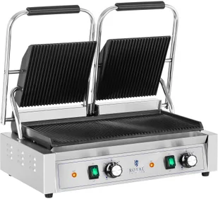 Moc 3600 WRyflowanyZakres temperatury 50-300°CTaca na tłuszczStal nierdzewna / żeliwoSpecyfikacja techniczna: Model - RCPKG-3600-RNr katalogowy - 10011989Stan artykułu - NowyWymiary płyty grillowej [cm] - Góra: 21 x 21 (2 płyty), dół: 48 x 23Tacka ociekowa - TakMateriał obudowy - Stal nierdzewnaInstrukcja obsługi - TakMateriał płyty grillowej - ŻeliwoMoc - 3600Przewód zasilający - 1,5Powierzchnia grzewcza - RyflowanaNapięcie - 230Wersja - PodwójnyZakres regulacji temperatury [°C] - 50-300Wymiary (DxSxW) - 36 x 57 x 16 cmWaga - 23 kgKluczowe informacjeWydajność - dzięki dwóm niezależnym elementom grzewczym o łącznej mocy 3600 WWszechstronność - dzięki żebrowanej płycie grillowej idealny do mięs, ryb, warzyw, kanapek itp. Higieniczność - łatwe czyszczenie dzięki stali nierdzewnej oraz szufladzie na tłuszczObszerność - dzięki wymiarom 2 górnych płyt 21 x 21 cm oraz dolnej 48 x 23 cmEfektywność - za sprawą jednoczesnego grillowania z obu stron na żeliwnych płytachGrill kontaktowy - 3600 W - ryflowanyGrill kontaktowy marki Royal Catering sprawdzi się w restauracjach, hotelach, kawiarniach, fast foodach, snack-barach czy na imprezach z cateringiem.