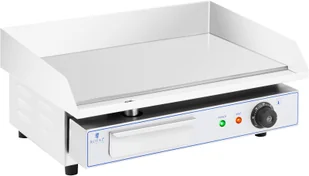 8Wymiary wysyłki (DxSxW) [cm] 63. 5 x 54. 5 x 34Waga wysyłki [kg] 24. 7Zakres dostawyPłyta grillowaInstrukcja obsługiKluczowe informacjeWszechstronność - gładka powierzchnia idealnie nadaje się do różnorodnych dań serwowanych w restauracjach, barach przekąskowych, food truckachWydajność - z mocą 3000 W i zakresem temperatur 50-300°CProfesjonalizm - doskonale ugotowane jedzenie dzięki w pełni automatycznemu sterowaniu termostatemPraktyczność - osłona przeciwbryzgowa i tacka ociekowa do czystej oraz przyjemnej pracyTrwałość - dzięki wysokiej jakości wykonania, obudowie wykonanej ze stali nierdzewnej oraz płycie grillowej wykonanej ze staliElektryczna płyta grillowa od Royal Catering do chrupiących i smacznych specjałówDzięki płycie grillowej z asortymentu Royal Catering możesz rozpieszczać swoich gości pysznymi specjałami z grilla przez cały rok. Soczyste steki i hamburgery, ryby, omlety, tortille czy warzywa - z grillem elektrycznym Twoja wyobraźnia nie ma granic. Urządzenie imponuje niskim poziomem wydzielania dymu oraz higienicznym i bardzo czystym sposobem pracy.