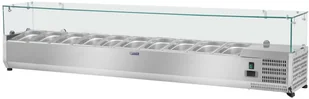 Cechy: . Szybkie chłodzenie dzięki kompresorowi o mocy 125W. Duża pojemność 70 l (miejsce na 10 pojemników GN 1/4). Szklana osłona chroniąca przed czynnikami zewnętrznymi. Automatyczny termostat utrzymujący temperaturę od 2 do 10°C. Obudowa wysokiej jakości ze stali nierdzewnej Nadstawa chłodnicza - 200 x 33 cm Nadstawa chłodnicza zapewnia świeżość oraz atrakcyjny wygląd produktów spożywczych, dzięki utrzymywaniu ich w niskiej temperaturze.