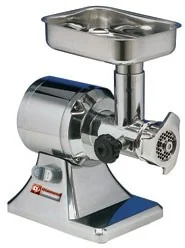 Maszynka do mielenia mięsa | n°12 z tarka do parmezanu | 800W | 550x300x(H)400mm, Obudowa zewnętrzna ze stopu aluminium. Obudowa kutra i ślimacznica wykonane z zabezpieczonego stopu aluminium do użytku spożywczego i stali nierdzewnej, wszystkie części wewnętrzne można łatwo zdemontować, co ułatwia utrzymanie. Górna misa ze stali nierdzewnej AISI 304. Standardowo dostarczana z kratką 6 mm. Kratka i ostrze ze stali nierdzewnej, samoostrzęcej się.