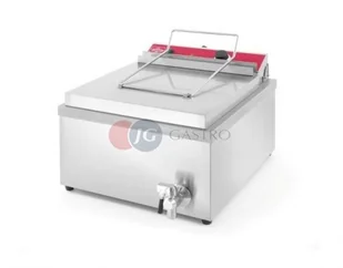 Cechy produktuo estetycznie wykonane urządzenie ze stali nierdzewnej; nie wchodzi w reakcję z żywnością, jest odporne na korozję i mechaniczne uszkodzenia,o pojemna komora smażenia o wymiarach 400×400x(H)160 mm i pojemności 12 l z zaznaczeniem minimalnego i maksymalnego poziomu oleju,o komora spawana, z odpływem oleju w dnie,o demontowalny element sterujący z grzałką, posiadający dodatkowe zabezpieczenie, które w momencie zdjęcia wyłącza całe urządzenie,o łatwe do utrzymania w czystości,o regulacja temperatury od +50°C do +190°C,o zabezpieczenie przed przegrzaniem z funkcją resetowania,o lampka kontrolna informująca o pracy urządzenia. W komplecieo dwa płaskie, stalowe ruszty do smażenia potraw wraz z dopinanym uchwytem z nienagrzewającą się rękojeścią (wym.: 354×383x(H)102 mm)o stalowa osłona grzałki służąca jednocześnie jako podstawa do rusztu na smażone potrawy (wymiary: 390×365x(H)40 mm)o dwufunkcyjna pokrywa komory smażenia służąca także jako półka ociekowa na ruszt z usmażoną potrawą (wym.: 423×446x(H)40 mm). . .