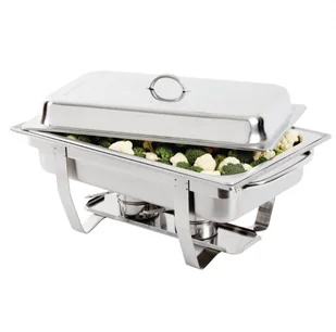 Podgrzewacz | 9L | 332x590x(H)270mm, Podgrzewacz GN 1/1 z wypolerowanej stali nierdzewnej 18/0, ze zbiornikiem na wodę, 9 litrowym zbiornikiem na żywność, pokrywą i dwoma uchwytami na pastę. Stojak na pokrywę pomiędzy ramą a zbiornikiem na wodę umożliwia opieranie pokrywy na dłuższym boku. Zestaw bemarów zawiera dwa 4 litrowe naczynia ze stali nierdzewnej z uchwytami i pokrywami z wycięciem na łyżki. Dostępne na sztuki, po 2 lub po 4. Pojemność 9 litrów.