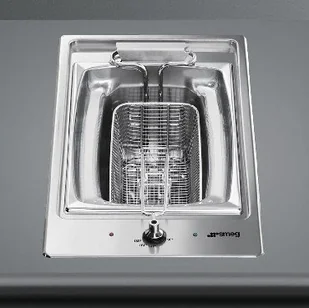 Frytkownica PGF30F Classica Stal nierdzewna Frytkownica PGF30F z niepowtarzalnej linii produktów Classica firmy Smeg to propozycja dla wszystkich miłośników dobrej kuchni i stylistyki, ergonomii oraz wyważonego podejścia do projektowania urządzeń. Wyjątkowo piękny design pozwala stworzyć unikalny wystrój stylowej, symetrycznej oraz minimalistycznej kuchni. Linię Classica (która obejmuje piekarniki, płyty grzewcze, ekspresy do kawy, lodówki i okapy) podkreślają wyjątkowe pokrętła i uchwyty piekarników, których czyste, eleganckie i nowoczesne kształty tworzą elementy wzornictwa przemysłowego. Oprócz stylistyki estetycznej, która odzwierciedla wartości marki Smeg, produkty te odznaczają się wysokim poziomem funkcjonalności i wydajności, które stawia je wśród najbardziej wszechstronnych na rynku. Estetyka / Sterowanie: