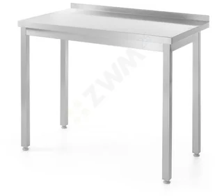 Stół roboczy przyścienny. Wykonany ze stali nierdzewnej AISI 430. Konstrukcja skręcana. Rant tylny o wysokości 4 cm. Nogi z regulacją w górę 2,5 cm lub w dół 5 cm wykonane z kwadratowych profili.