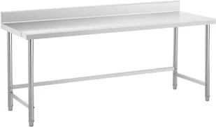 Stół ze stali nierdzewnej - 200 x 70 cm - rant - udźwig 95 kg - Royal CateringStal nierdzewnaNośność: 95 kg200 x 70 cm1 poziomProsty montażDane techniczneMateriał Stal nierdzewnaWysokość rantu [mm] 110Średnica nóg [mm] 48Liczba półek 1Wymiary górnej półki [cm] 200 x 70Nośność całkowita [kg] 95Rant TakRegulowane nóżki NieWymiary (DxSxW) [cm] 200 x 70 x 96. 5Waga [kg] 23. 9Wymiary wysyłki (DxSxW) [cm] 208. 7 x 79. 1 x 24. 2Waga wysyłki [kg] 28.