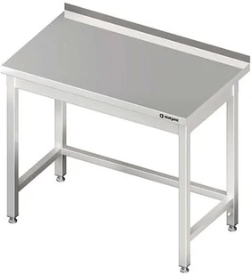 Stół roboczy wykonany ze stali nierdzewnej. Spawany. Konstrukcja wzmocniona stelażem dolnym wykonanym z kształtowników stalowych. Blat stołu z blachy o grubości 1 mm dodatkowo wzmocniony od spodu podwójnie laminowaną płytą o grubości 18 mm. Obrzeże płyty osłonięte metalowym profilem, co zabezpiecza przed dostaniem się wilgoci . Grubość blatu wynosi 4 cm.
