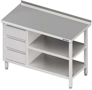 Stół spawany / stal nierdzewnaGłębokość szuflad 150 mmMożliwy montaż zamka 982320001Szuflady po lwewj stronie - Meble wykonywane na zamówienie - realizacja 2- 4 tygodnie od momentu zaksięgowania wpłaty.