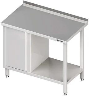 Stół roboczy z szafką po lewej stronie i półką dolną po prawej wykonany ze stali nierdzewnej. Przestawna środkowa półka. Konstrukcja spawana. Blat stołu z blachy o grubości 1 mm dodatkowo wzmocniony od spodu podwójnie laminowaną płytą o grubości 18 mm. Obrzeże płyty osłonięte metalowym profilem, co zabezpiecza przed dostaniem się wilgoci .
