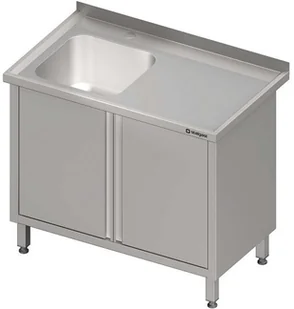 Stół ze zlewem 1-komorowym i szafką z drzwiami otwieranymi wykonany ze stali nierdzewnej. Komora zlewu po lewej stronie. Konstrukcja spawana. Komora zlewu wykonana z blachy o grubości 1 mm. Blat z wgłębieniem 1,9 cm po obwodzie.