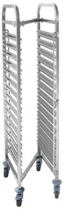 Wózek do transportu pojemników GN, 15 stanowisk o wymiarach GN 1/1 i wysokości 1700 mm. Wózek wyposażony jest w obustronne zabezpieczenie przed wypadnięciem pojemników. Doskonale sprawdza się w dużej i małej gastronomii, w firmach cateringowych, szkołach czy szpitalach. Dostarczamy w płaskim opakowaniu do samodzielnego montażu.