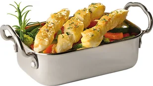 Mini brytfanna do serwowania potraw np. zapiekanek, mięs itp. w niekonwencjonalny sposób. Wykonana ze stali nierdzewnej. Można myć w zmywarkach i sztaplować.