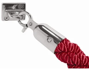 Zaplatany sznur odgradzający | bordowy | dł. 1500 mm, 1,5 metrów długie aksamitne sznury odgradzające. Dostępne w 3 kolorach z mosiężnymi lub chromowanymi wykończeniami.