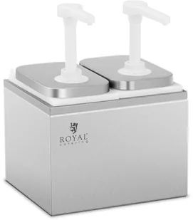 Podwójny dyspenser do sosów marki Royal Catering sprawdzi się doskonale do dozowania odpowiedniej ilości majonezu, ketchupu, musztardy czy dresingu.