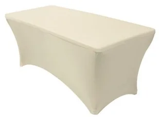 Pokrowiec na stół bankietowy 240x76 cm. Zaprojektowany dla zastosowań na bankietach, ślubach. Przyjemny prosty design oraz zastosowany łatwy w pielęgnacji materiał łączy piękno i praktyczność. Dane techniczne i parametry obrusa: Elastyczny materiał Łatwo zmywalny Praktycznie się nie gniecie Kolor jasne Ecru Nakładki na nóżki zabezpieczające zsuwanie się pokrowca Pranie w pralce automatycznej lub ręcznie w temp.