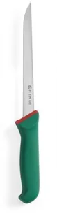 Nóż do filetowania ryb z linii Green Line z zielonym trzonkiem. Długość całego noża 33 cm. Długość ostrza 21cm. Ostrze noża wykonane z jednego kawałka martenzytycznej stali nierdzewnej o specyficznej strukturze z węglowo-molibdenowo-wanadową domieszką, co gwarantuje zachowanie ostrych, odpornych na korozję krawędzi tnących o dużej twardości i odpowiedniej elastyczności. Noże charakteryzują się długą żywotnością ostrza i bardzo łatwym ostrzeniem.
