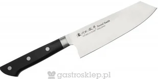 Ostrze - stal molibdenowo-wanadowa Twardość - 56-58 HRC Długość całkowita - 30,0 cm Długość ostrza - 17 cm Szerokość klingi - 4,8 cm Grubość klingi - ok. 2,2 mm Waga - ok. 170 g Noże kuchenne Satake Satoru oferują użytkownikom optymalny stosunek ceny do jakości. Wytrzymałe klingi wykonano z mocnej stali nierdzewnej z dodatkiem molibdenu, który zwiększa ich trwałość i odporność na korozję. Nitowane rękojeści o pełnym trzpieniu powstały z gładkiego bakelitu wypełnionego mączką drzewną, który jest odporny na zarysowania i wysokie temperatury.