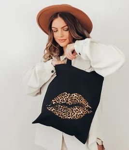 czarna torba bawełniana - usta panterka