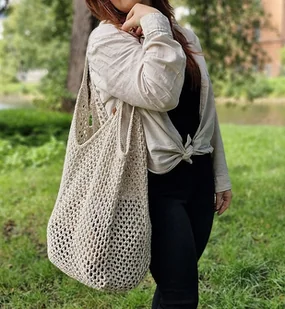 Ekologiczna torba siatka ze sznurka, beżowa
