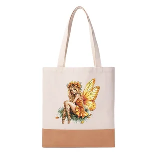 Ekologiczna torba z lnu i korka z nadrukiem haftu - Pomarańczowa wróżka