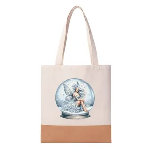 Haft krzyżykowy - Ekologiczna torba z lnu i korka z nadrukiem haftu - Magiczna kula z wróżką