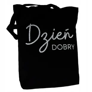 TORBA bawełniana czarna 220g nadruk DZIEŃ DOBRY brokat torebka na zakupy