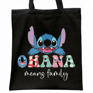 ✨ Czarna bawełniana torba na zakupy z motywem Sticha z bajki Lilo i Stich - Idealny prezent dla fanów i miłośników bajki! ✨ Numer wzoru: U-01071 👜 CECHY NAS...