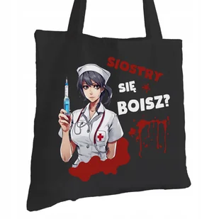 Torba Bawełniana dla Pielęgniarki Czarna Prezent ekologiczna Trwały Nadruk